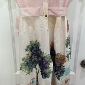 House of Maguie Tropical Mode Palm Print Utility Pockets Flared Trousers Jumpsuit