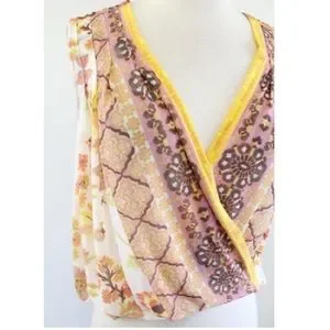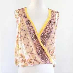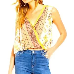 FREE PEOPLE | Floral print havana muscle tank Hi LO draped white yellow