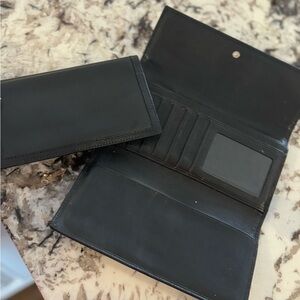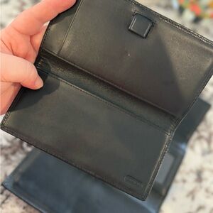 Vintage Coach Black Stitch Leather Tri Fold Wallet Removable Checkbook