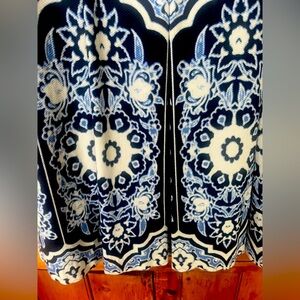 TALBOT SIZE 12 PETITE BLUE AND WHITE DAMASK PATTERN/ PRINT