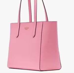 New Kate Spade Staci Med. Saffiano Leather Tote Bag In Blossom Pink Color with Gold tone hardware.Has zipper closure,Has two slot pockets on inside and big zipper pouch on inside of the tote About 13"1/2 Wide by About 9" Height Messurments in Photos.Matching Kate Spade Med.Leila 8" by 5" Leather Wristlet In Blossom Pink.Has 4 Card Slots on the inside with Gold Tone Hardware.Beautiful Color.New With Tags. Would make a Great Gift.....