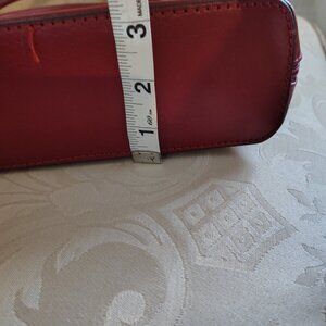 Vera Pelle deep lipstick red handbag. The bag is in pretty good condition, very clean inside and out. The height, from top to bottom, is about 7 in. The length, about 13 in. The straps of the bag measuring from the zipper is roughly about 7 in. The depths is under 4 in, just a little. I always said you can always tell a good bag by the pull on the zipper, pull on the zipper s very substantial. This bag is made very light so it is not a heavy bag to carry, which means that individuals who struggle with pain in their shoulders perhaps this wouldn't be a terribly hard bag for them to carry. Perhaps. Very sharp bag, very cute. And apparently it must be a popular bag, because I was not able to find a similar one on the internet.