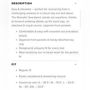 NWT Alo Yoga Nomadic Sweatpants in Black Front & Back Pockets Size S
