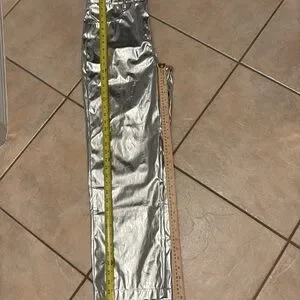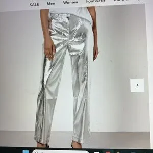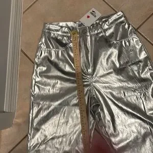 NWT Amy Lynn Textured Faux Leather Straight-Leg Silver Trousers SZ: M