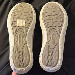 NWOT Skeckers light brown linen look textile upper slip ons, sizer 8 1/2