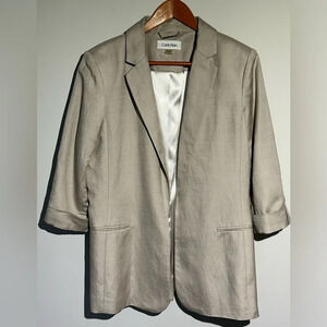 CALVIN KLEIN Beige Women Linen Blazer 3/4 Cuffed Sleeves Size 14