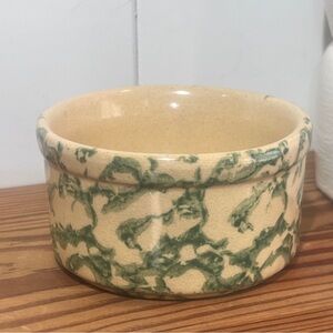 - Green and beige 2” small bowl ramekin crock