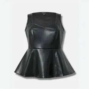 Elevate your style with this chic black faux leather peplum top from Torrid. Perfect for a night out or adding an edge to your everyday look.