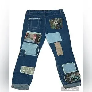 FREE PEOPLE Patched patchwork slim slouch jeans size 30