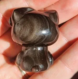 Silver Sheen Obsidian Hello Kitty Crystal Carving
