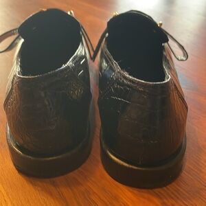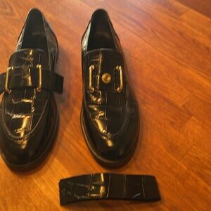TIBI Norris croc embossed leather Blk loafer with removable strap.