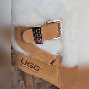 Absolutely gorgeous UGG Auzland Sheepskin High Heel Boots that I personally bought while I was in Australia. I only wore them once since coming back from my trip, so they are in pristine condition with no known flaws or issues. See photos for condition details. Boots are water resistent and come in a chestnut color with a whitish sheepskin top and lining. Smoke-free home. Will be shipped in the original box.
