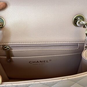 Authentic Chanel Light Pink Square Mini light gold hardware