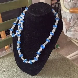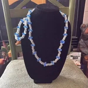 ⭐️ host pick⭐️ Elegant blue and clear beaded necklace and earring set, perfect for adding a touch of sophistication to any outfit.