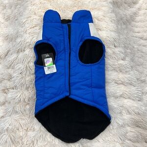 Brand new, never worn with tags still on. Super cute dog or cat water-repellent quilted vest has a very soft black fleece lining, reflective safety striping, and a velcro closure in the front, for easy adjusting to your pet. 100 % polyester and hand washable only. Officially licensed by the NFL.