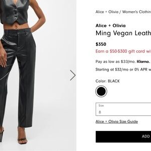 Alice + Olivia "Ming" luscious vegan leather (PU/polyester) pants, extra soft to the touch.