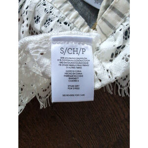 Cabi Dakota Blue Denim Jacket Women Sz S Removable lace Trim #5297 Office Career