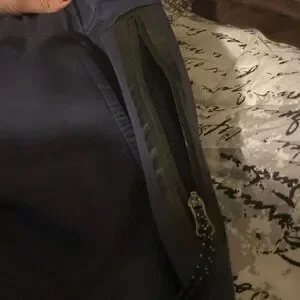 These are a pair of layer 8 navy blue shorts with 3 pockets (1 with a zipper) for men’s medium. It is lightly worn. Adjustableable waist band with draw strings