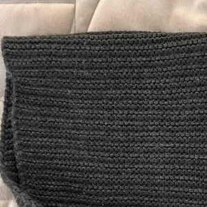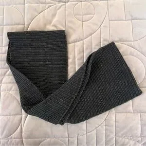 Thick cozy knitted scarf in charcoal gray/black in the infinity style. Measures 9.5” wide, 65” long. Excellent condition. Care instructions have been removed.