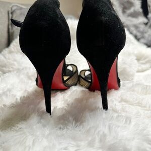 Christian Louboutin Suede Mesh Accents T-Strap Pumps