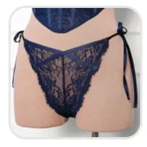 Mentionables Eyelash lace bow bralette and lacy side tie panty in navy XL