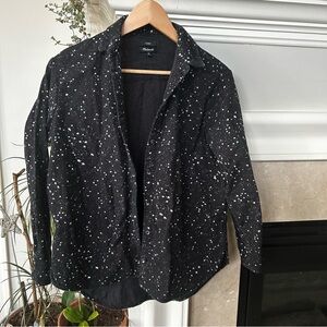 Black and white mini printed button down top. Gently worn but the black is a little faded. Super soft and warm. Oversized fit.