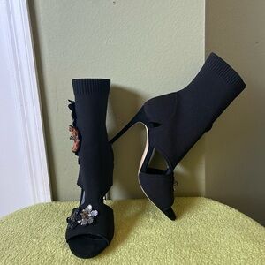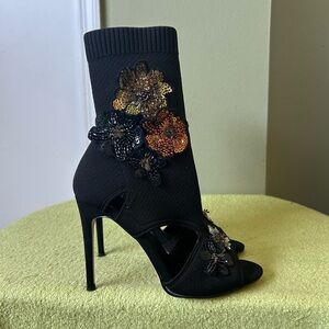 Black Cut out knit sock embellished floral design beaded ankle boots size 37 by Zara Basic Collection. New