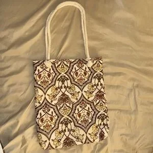 Handmade bag, NWOT. Super cute vibrant colors. The handle is a kind of rope material. Closure is a snap