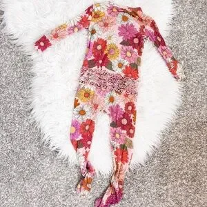 These are so soft and comfortable! Sad they are too small for my daughter now. These are well loved, but have lots of life left. Some piling and fading, and footies/tag print/zippers have some wear - see photos! Ruffle detail along zipper and on butt are a sweet detail 🌼💜