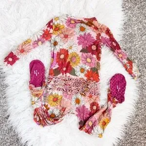 Posh Peanut | “Della” Floral Print Footie Ruffled Zippered One Piece
