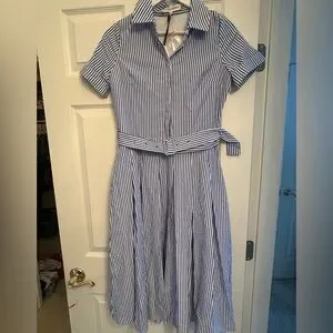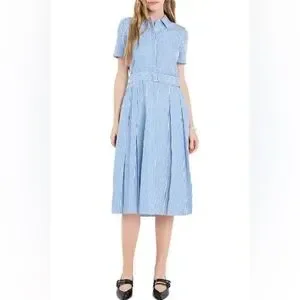 English Factory Striped Belted Midi Dress Size XS