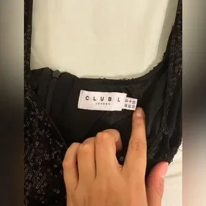 BLACK SEQUIN SQUARE NECK SPLIT FRONT MAXI DRESS from Club Llondon. It is currently sold out