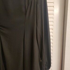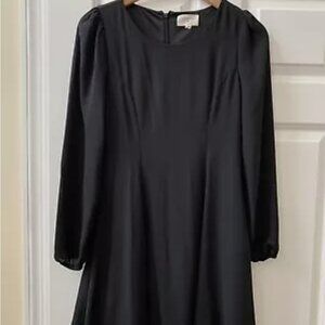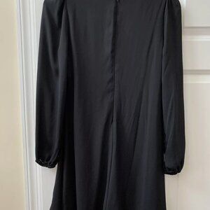 Everly Small Long Sleeve A-Line Shift Black Seamed Chiffon Sheath Dress Back Zip