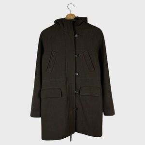 J. Crew Stadium Cloth Dark Olive Hooded Button-Up Coat with Zipper By Nello Gori