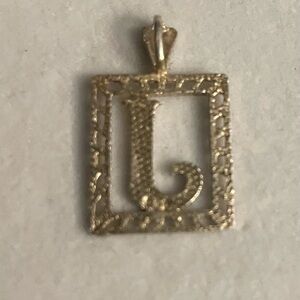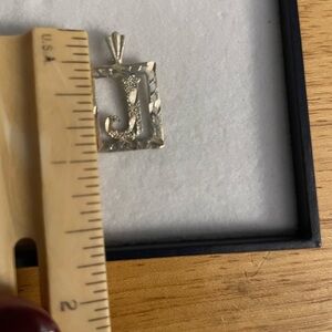 Vintage Sterling Silver letter J rectangular cut out edges design with a diamond cut style