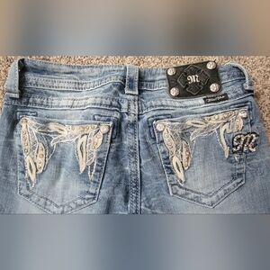 Nice preowned pair of Miss Me jeans with gorgeous details. Does have some hem wear. See photos.