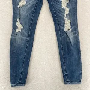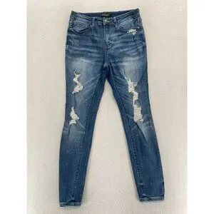Judy Blue Jeans Women's 7/28 Skinny Fit Medium Blue Stretch Denim Distressed