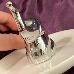 LAUREN CONRAD Baby Elephant Ceramic WHITE SILVER Sitting ELEPHANT TRINKET TRAY Ring and Jewelry Holder