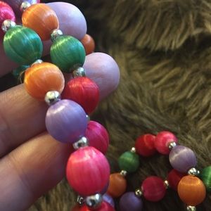Vintage bright color silk wrapped bead necklace