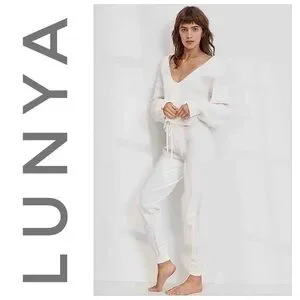Lunya Cozy Cotton Silk Jogger Drawstring Pull On Sincere White NWT
