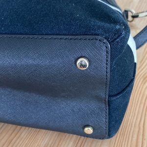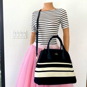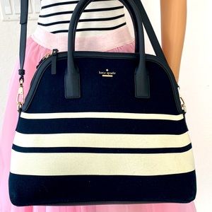 Beautiful large Black and Beige striped Kate Spade fabric bag in mint condition.
