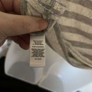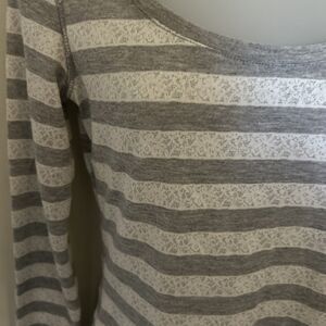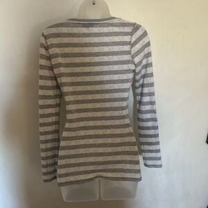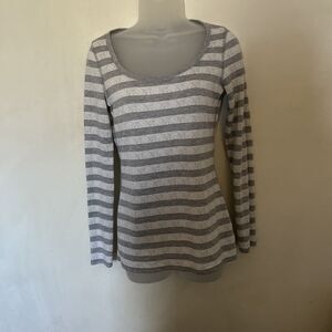 EXPRESS Women's Grey Shimmer Stripe L/S Scoop Neck Top Blouse Small M Fitted
