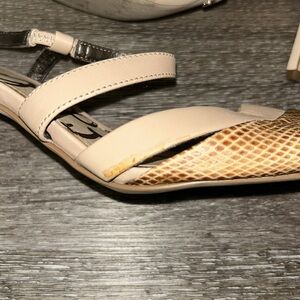 Sam Edelman Othello Tan Leather Snakeskin Print Ankle Strap Heels