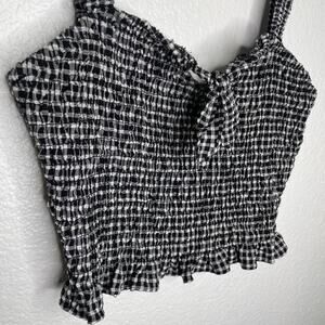 Sienna Sky Womens Top Size L Black White Checkered Smocked Sleeveless Casual