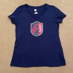 MLS Tee- Short Sleeve Womens Medium Blue Red White Saint Louis City SC VNeck Top