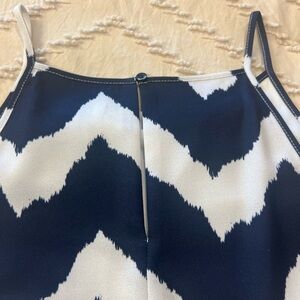 Spaghetti strap navy blue and white chevron dress. Size small. See photos for condition, small stain. Smoke free home! Bundle with other items in my closet and save :)