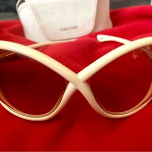 Tom Ford chic beige sunglasses. Perfect for any occasion, they offer both fashion and function.