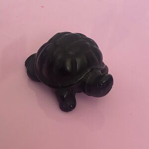Hand Carved Black Onyx Crystal Turtle