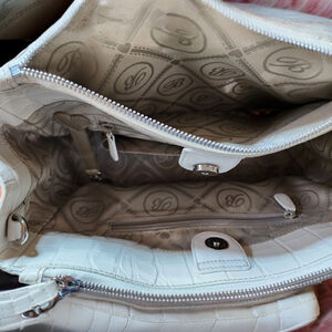 Featuring a spacious interior with multiple compartments, this purse is designed to keep all your essentials organized and easily accessible. The soft white leather exterior adds a touch of elegance, while the silver hardware accents add a modern twist.
