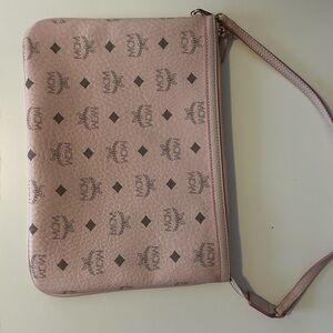 Authentic MCM pink clutch shoulder bag with zipper closure